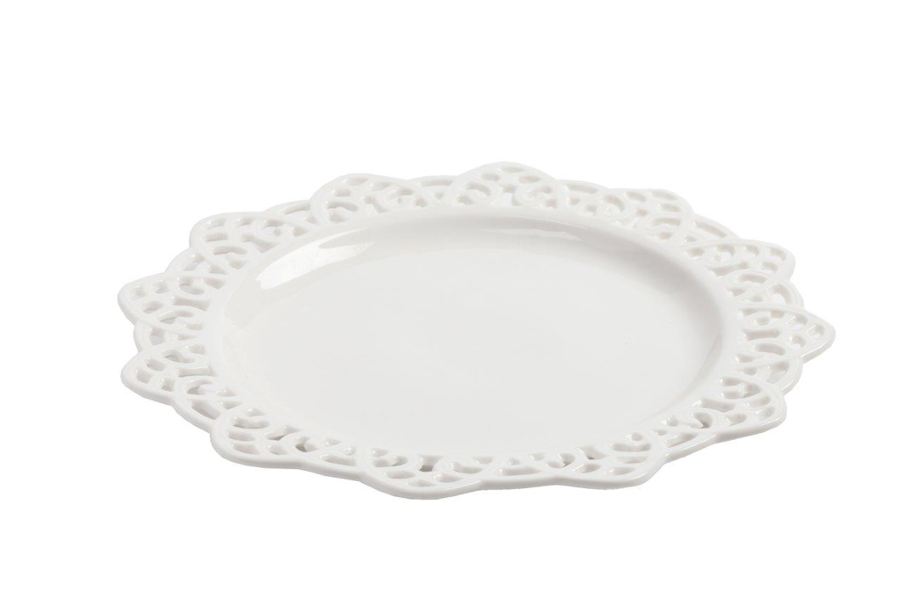Блюдо выполнено из белоснежного костяного фарфора с ажурными краями. Такое блюдо прекрасно подойдет для различных нарезок и овощей. Безупречный стиль и качество исполнения сделают ее украшением вашего стола и прекрасным подарком.