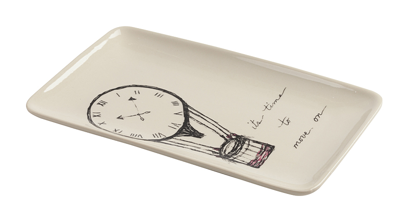 Дом можно декорировать не только настенными панно или статуэтками. Можно украшать интерьер изящной необычной посудой. Для этого прекрасно подойдет декоративное блюдо Balloon. Оно выполнено из грубой керамики белого цвета. Сама тарелка простой прямоугольной формы отличается рисунком с часами в виде воздушного шара. Время двигаться к свершениям и обновлениям! И для начала можно украсить дом такой деталью. Это блюдо может украсить интерьер, а также обеденный стол. Удобное углубление отлично подойдет для фруктов и овощей. Или для чего-то ещё. Его можно использовать даже для кулинарных экспериментов: оно выдерживает достаточную температуру микроволновой печи. А также есть возможность мыть тарелку в посудомоечной машине. Блюдо может стать приятным подарком для каждого.