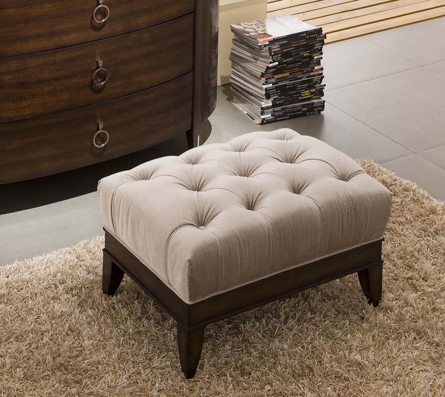 Пуф выполнен в стиле Неоклассика. Ножки в отделке шпон махагона. Сиденье обито велюром и декорировано стежкой капитоне и гвоздиками по углам. Сделан из массива дерева.